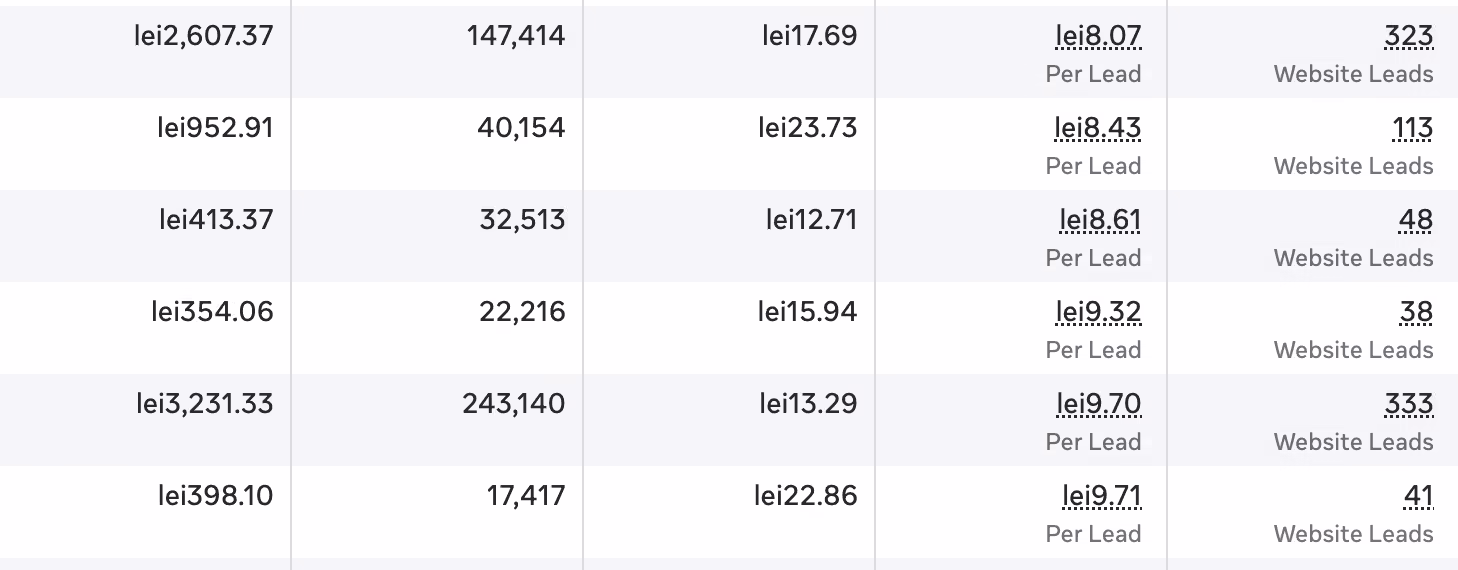 - Îți putem recomanda să redistribui bugetul pe campaniile cu cele mai bune rezultate și să investim în segmentele de public cu cel mai mare potențial.